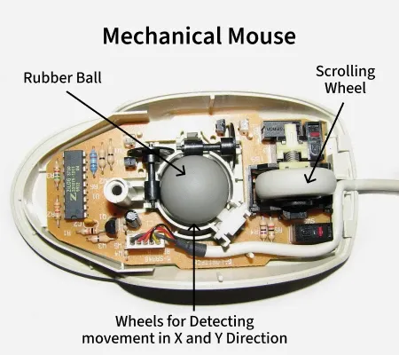 Optical Mouse में Pointer Movement के लिए Optical Sensor लगा होता है। दूसरी तरफ Mechanical Mouse में Pointer Movement के लिए Rubbers या Metal से बानी Ball लगी होती है।